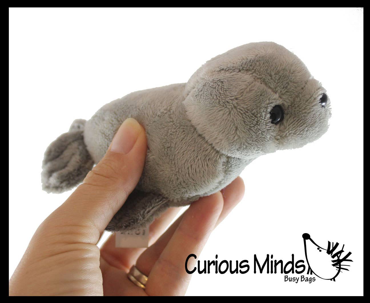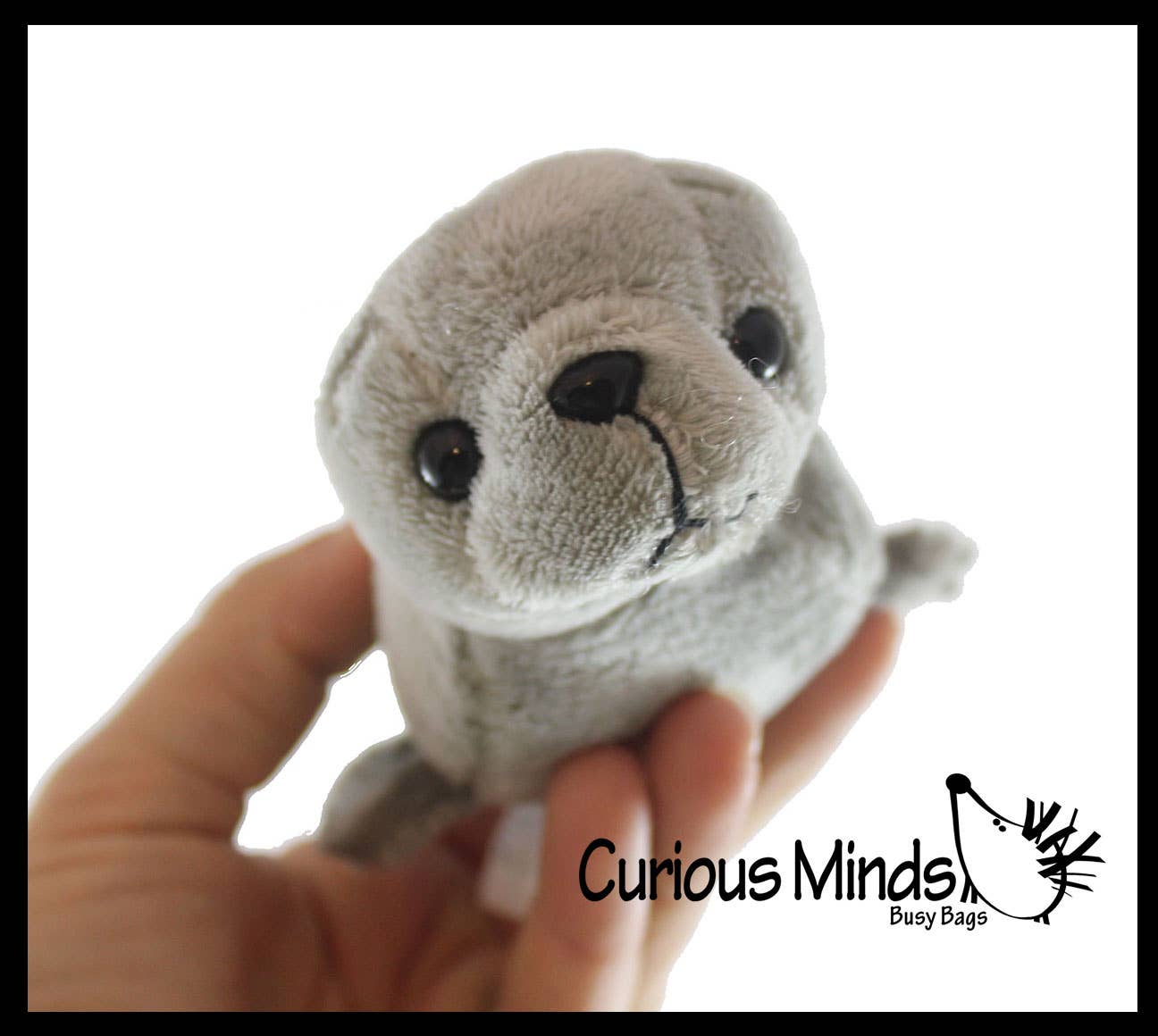 This adorable plush stuffed toy is a little baby harbor seal. It is 3.5" wide, 5.5" long, and 3" tall. This is simply a fun little stuffed animal for kids who like ocean animals. It has crunchy little bean pellets in its stomach. The beans make it a small and comforting fidget to rub. This is simply a fun little stuffed animal for kids who like stuffed animals! This is a cute and unique birthday gift for your spouse child, girlfriend or boyfriend.