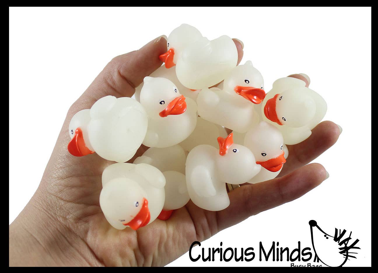 These tiny rubber ducks are classic rubber duckies that glow in the dark after being activated by light! These are a great cost-effective reward or prize for classrooms, offices, carnivals and goody bags. Each duck is 1.5" tall x 1.5" long. Make bath time more fun with our Rubber Duck! This classic toy is perfect for kids and adults alike. With its bright colors and cheerful designs, it’s sure to bring smiles and laughter. Whether you're using it for playtime, decoration, or even a quirky gift, this duck is a must-have!