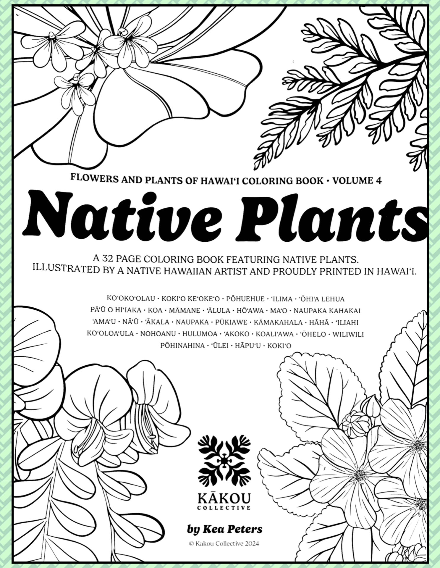 Hawai'i coloring books with original art by Native Hawaiian artist Kea Peters. Printed in Hawai'i.